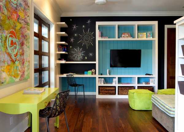 Зона для работы нужна любому ребенку, будь то малыш или школьник. Для малышей ставится небольшой низкий стол с двумя стульчиками, а для школьников отличный вариант – широкий угловой стол и стулья. Можно поставить компьютерный стол, но при этом стол должен быть длинным и желательно с двумя компьютерами, чтобы не было очереди во время работы.