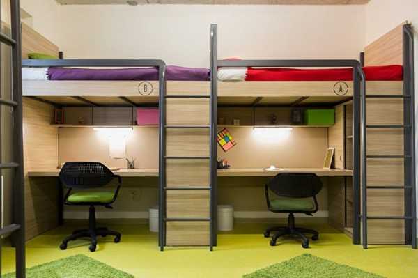 - Где спальное место, вместо двух отдельных кроватей поставить двухъярусную кровать. Двухъярусная кровать – спасение в спальне для детей.