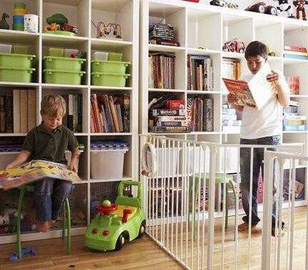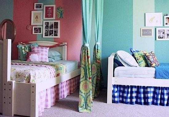 4. Создайте каждому ребенку свой собственный уголок в комнате с помощью перегородки, штор или стеллажей. Так детям будет намного комфортней заниматься своими личными делами.
