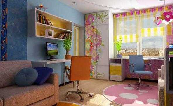 Дизайн интерьера комнаты всегда начинается с ремонта. Сейчас модно стены оклеивать обои разных цветов. Цвет обоев в комнате зависит от возраста и пола ребенка. Если дети маленькие и разнополые то стоит выбрать обои альтернативных цветов, но достаточно колоритные. Если дети – подростки, то выбирать более спокойные обои. Дизайнеры считают, что чем старше ребенок, тем цветовая гамма становится спокойнее. Яркие оттенки для обоев и для всего интерьера подойдут возрасту от 0 до 7 лет. Хорошо смотреться будут фотообои, для малышей отличный вариант – обои с изображением героев мультфильма. Подросткам выбрать фотообои, подходящие их интересам.