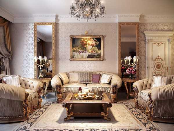 В качестве элементов декора выступают зеркала, картины в роскошных рамах и другие предметы искусства.