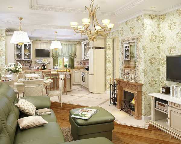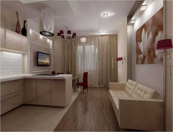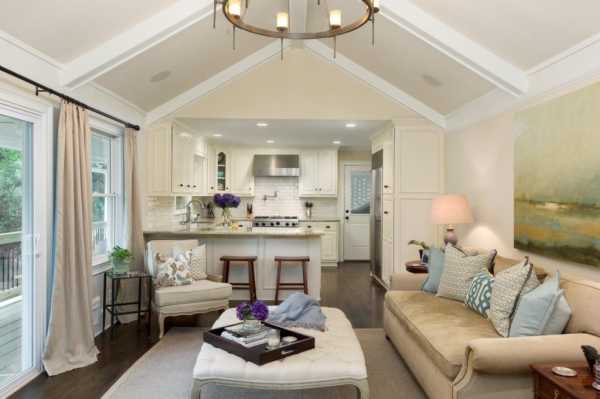Основная цель оформления гостиной, помимо эстетичного внешнего вида, – расширение пространства. Проще всего решить вопрос перепланировкой, то есть, объединив комнату с кухней или коридором.
