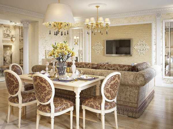 Для классики характерны белые потолки, отделанные лепниной. Предметы мебели обязательно из натурального дерева, гармонирующего по цвету с общей обстановкой.
