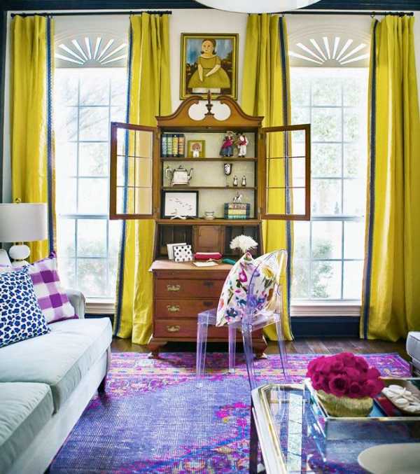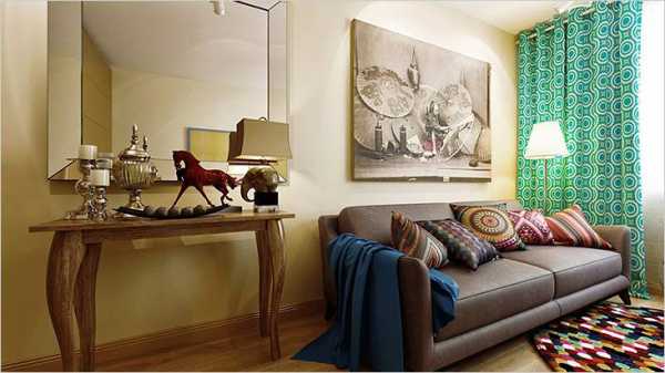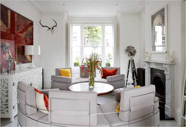 Все предметы интерьера в гостиной в стиле эклектика должны сочетаться