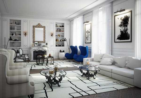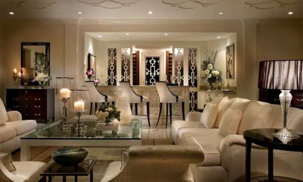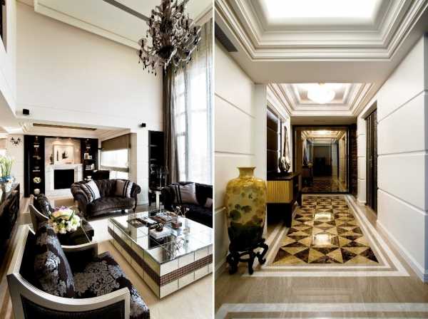 В помещении могут быть изящные молдинги, подиум, дизайнерские предметы интерьера или же образцы репродукции, редкие и экзотические предметы. Иными словами вариантов масса, стоит только позаботиться о том, чтобы не нарушалась гармония.