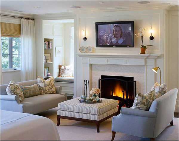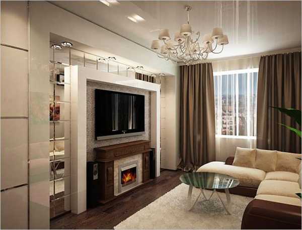 Массивные диваны и объемные кресла – это чересчур для интерьера гостиной в хрущевке. Обставлять ее пространство лучше миниатюрными предметами, причем искать для их расстановки нестандартные решения. Так в одной из интересных идей дизайна гостиной диванчик предлагается поставить не к стене, а под окно, а уголок отдыха сгруппировать возле фальшкамина.