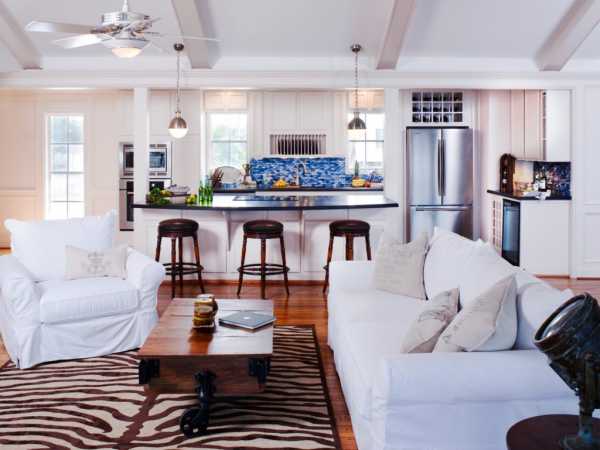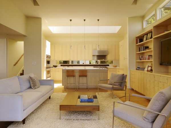 В некоторых домах гостиная соединена с кухней и является ее продолжением, что не только удобно, но и стильно.