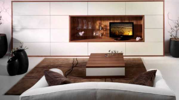 Для оживления обстановки достаточно добавить раскидистую сухую ветку, помещенную в бежевую вазу напольного типа. В современном дизайне гостиной ветка может быть заменена двумя шарами перекати-поля, симметрично выставленными по бокам от плазменной панели.