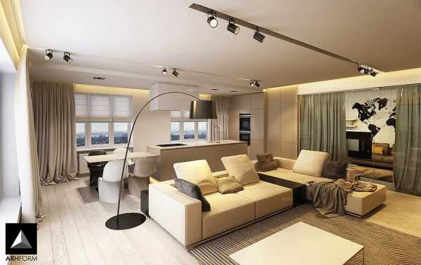 Помимо зонирования можно осуществить гармоничное сочетание различных зон комнаты, причем так, что они в буквальном смысле сольются воедино. Дизайнеры еще на этапе проектирования могут показать реальный вид будущего интерьера, так как создание эскизов проводится посредством компьютерных технологий, чтобы была возможность подправить неточности и удалить нелепые детали.