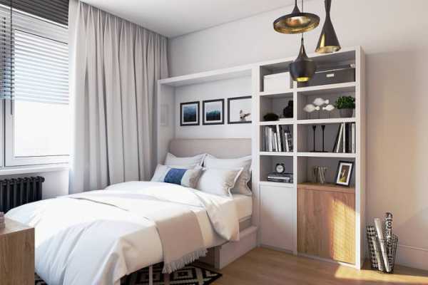 Совет! В малогабаритной спальне иногда приходится делать выбор между полноценной двуспальной кроватью или вместительных шкафом. Предпочтение все стоит отдать нормальному отдыху, а выходом может стать кровать с подиумом, в котором можно устроить вместительную систему хранения. а над кроватью разместить полочки