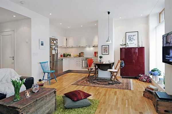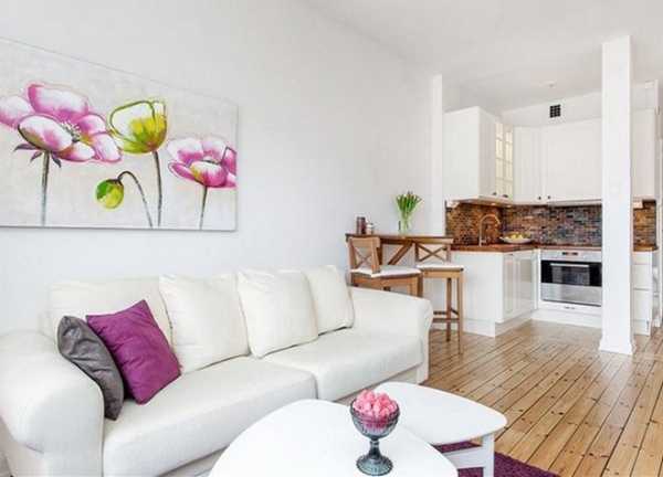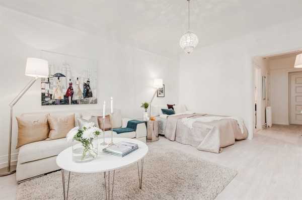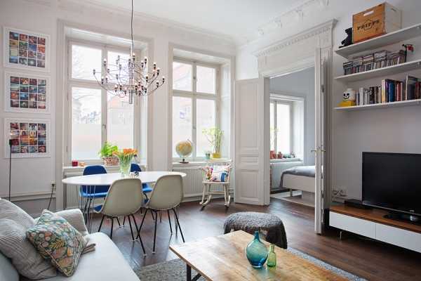 Для небольшого помещения скандинавский стиль подходит как нельзя лучше. Он известен своей способностью раздвигать границы, дарить много света и простора. Дизайн интерьера маленькой однокомнатной квартиры в стиле Скандинавии прост и одновременно изящен. Он совершенно не нуждается ни в каких дополнениях. Светлая отделка, несколько ярких акцентов, грамотно расставленная мебель – вот и все, что вам нужно. Особенно интересна угловое расположение жилья– чем больше естественного света с разных сторон, тем лучше.