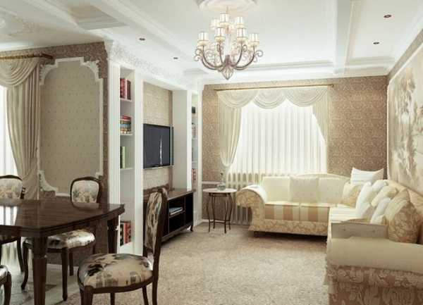 Если вы стремитесь к извечным ценностям, гармонии, изыску, интерьер однокомнатной квартиры классика – это то, что вам необходимо. Стилю характерны симметрия, высокое качество материалов, наличие декоративной лепнины, статуэток, картин, зеркал в позолоченных оправах. Цветовая гамма должна быть спокойной, нейтральной, монохромной, с неброскими принтами или полосками.