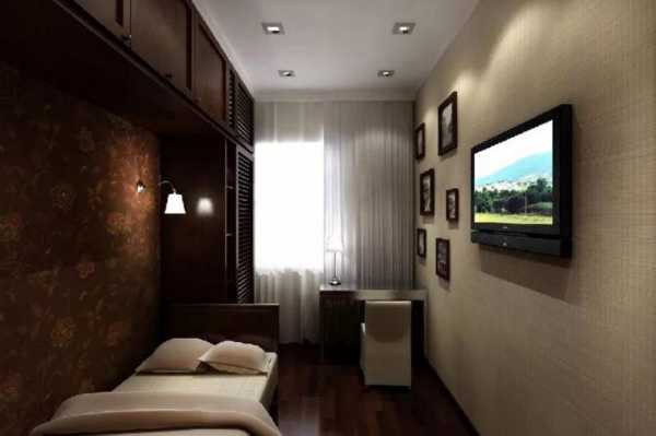 Что касается комнатного гарнитура, упор необходимо делать на узкую мебель. Отлично будут смотреться различные комнатные стеллажи, а благодаря своей функциональности можно будет существенно сузить круг необходимой мебели. Так же можно рассмотреть вариант приобретения шкафа-купе. Среди таких можно легко найти вариант с зеркальными дверцами, что сделает не только менее заметным сам шкаф, но и визуально увеличит размер вашей комнаты.