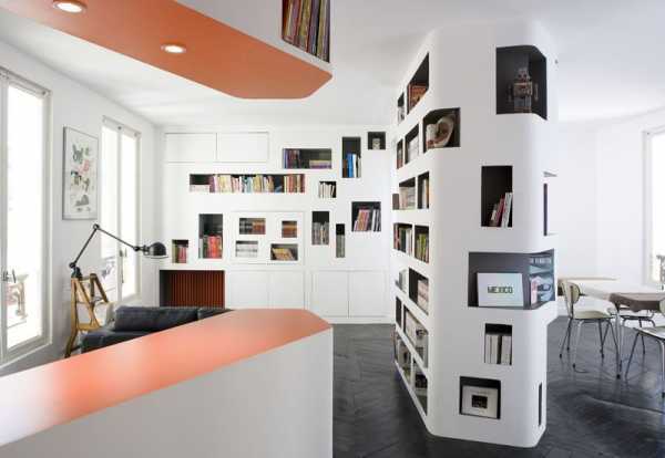 - не оставляйте пустовать место вокруг дверей – сверху можно разместить полочку, а по бокам – два узких стеллажа.