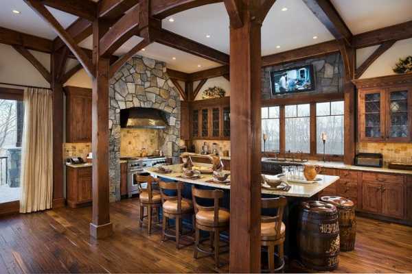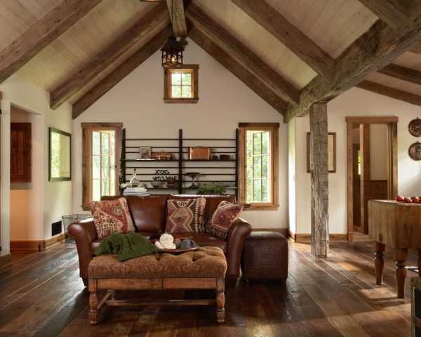 - Используйте подходящие стили оформления. Например, старорусский или американский кантри удачно впишутся в такое помещение.