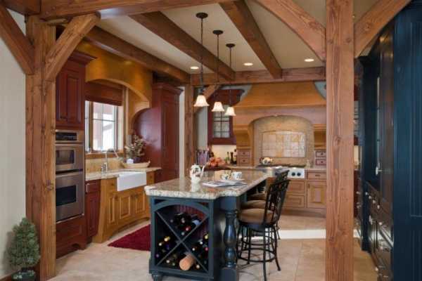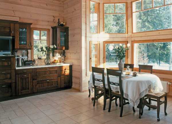Для кухни в доме из бруса хорошо подходит ретро стиль, кантри или прованс