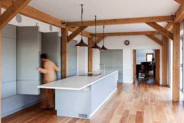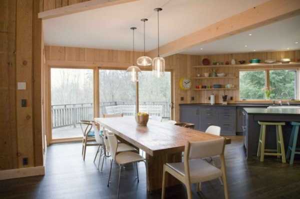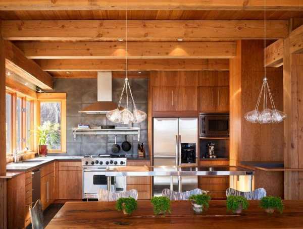 Интерьер кухни-гостинной в доме из брусаДизайн кухни в брусовом домеСовременный интерьер кухни в брусовом домеСовременный дизайн кухни в доме из бруса