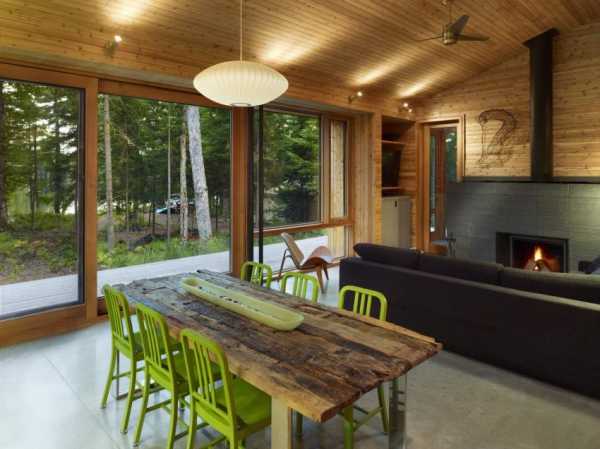 Этот стиль предусматривает полный отказ, от какой-либо обработки стен, структура дерева должно быть видна. Лучшим решением будет использование D-образного бруса, или сруба из цельного дерева.