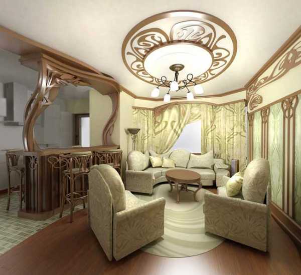 Первое место по силе аляповатости занимает гипсокартонная (сложная и дорогая в исполнении) волна на потолке. При этом, чем больше амбиций (желания заработать) у горе-дизайнеров, тем массивнее изогнутые линии и пороги.