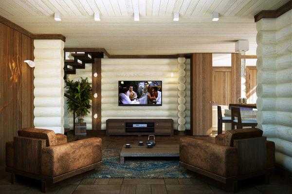 Профилированный и клееный брус: интерьер, фото домов внутри из этих материалов