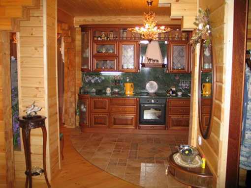 Главной особенностью, а равно трудностью оформления такого типа строения является повсеместное применение дерева. Оно здесь повсюду. Бревенчатые стены, потолок (или потолочное перекрытие, в зависимости от этажности), и даже пол выполнены из доски. При таком обилии однородного строительного материала появляется необходимость разнообразить внутреннее убранство.