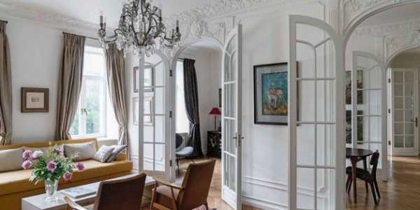 Исключение — арки с огромными распашными дверьми, которые соединяют гостиную, столовую, просторную прихожую и кабинет как на фото.