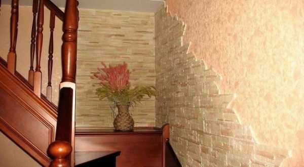 Отделка стен подразумевает использование природного облицовочного камня, кирпичной кладки. Расцветка отделочного материала стенового пространства подбирается из оттенков натурального дерева. С наружной стороны экстерьер коттеджа также можно облицевать каменьями. Стоить такое решение будет дорого, но виду здания позавидуют современные стеклянно-металлические офисы.