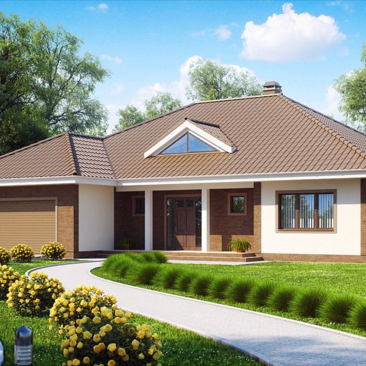Одноэтажный дом с гаражом на 1 машину. Модельный дом с гаражом на 2 машины.Посмотреть больше проектов домов С ГАРАЖОМ .