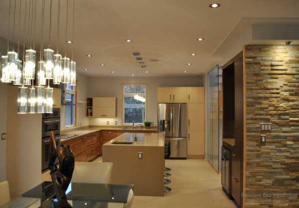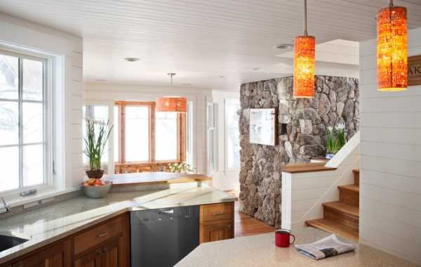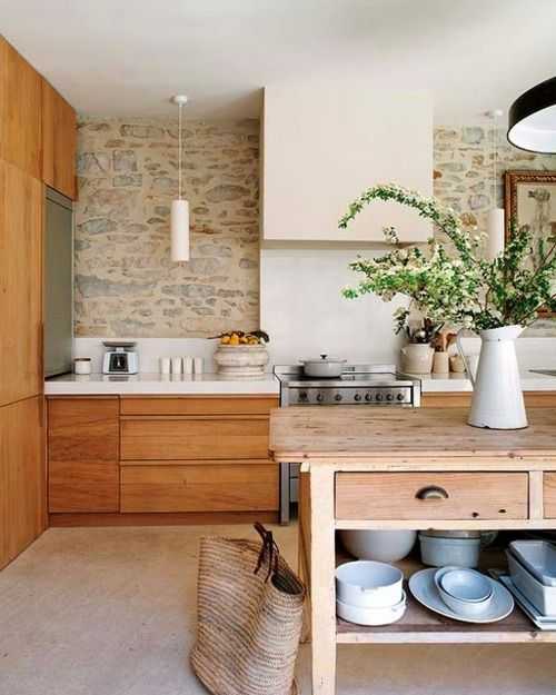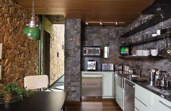 Стена из камня в интерьере кухни