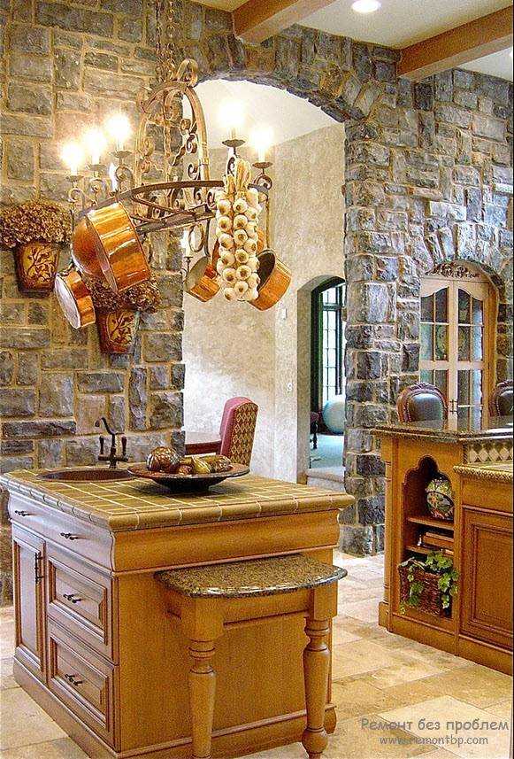 Арки и дверные проемы из камня на кухне