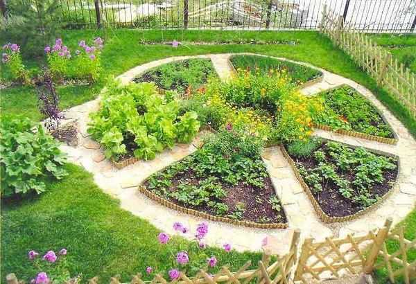 Одни растения садятся в центре, другие в определенной форме грядок вокруг центра.