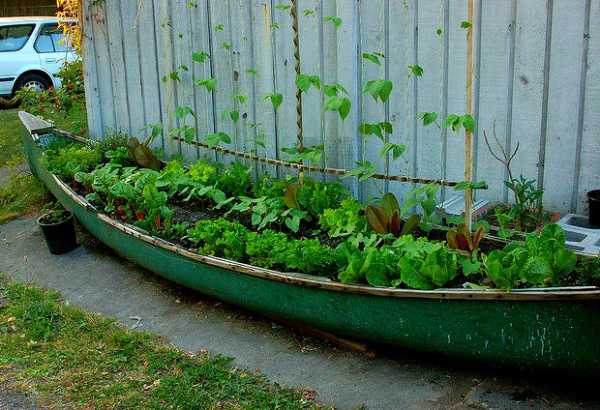 Для создания грядки можно использовать и старые шины, чемоданы, бочки и другие не нужные подручные вещи.