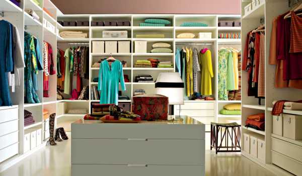 При использовании гардеробной комнаты важно видеть содержимое её открытых полок и всех выдвижных ящиков. Это основные рекомендации, которые надо учитывать при планировке ее наполнение.