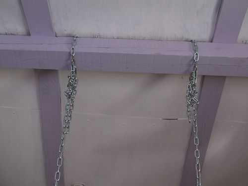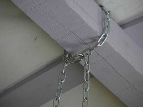 Все это делается при помощи карабинов, для большей уверенности в надежности конструкции остатки цепи завязываются узлом, либо прикручиваются проволокой.