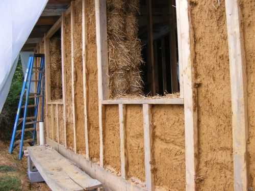 - Соломенные стены с глиняной обмазкой. Отличаются хорошей теплоизоляцией, но требуют ремонта из-за грызунов, которые селятся в толще стены.
