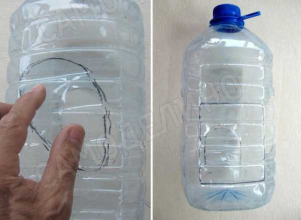 Отрезаем низ пластиковой бутылки, это будет основа для нашей будущей кормушки. Конечно, можно сделать кормушки и меньшего размера — они будут легче по весу и можно будет без труда закрепить их на ветвях деревьев.