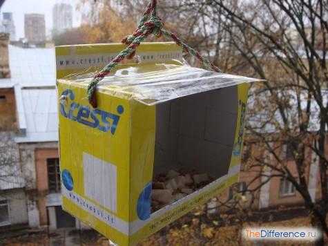 для птиц своими руками из коробки из-под сока (подойдет также от молока или вина). При этом нам