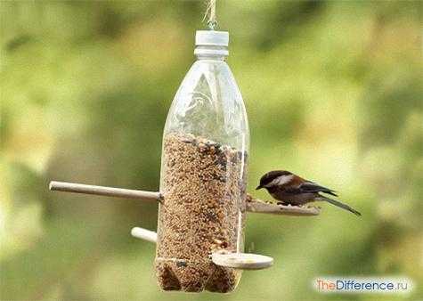 от большого скопления веток и заборов.Например, кормушка для птиц своими руками из пластиковой бутылки 5 литров может быть расположена на высоте от полутора метров от земли.