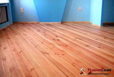 Вначале делают прочную стяжку, и выравнивают поверхность, потом устилают ранее выбранный материал. Для зала обыкновенно приобретают паркет, линолеум или ламинат.