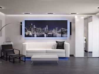 Гостиные в минималистическом стиле обычно имеют небольшую площадь. Но можно оформить и большие залы. В этом случае стиль необходимо смешать с лофтом или с хай-теком.