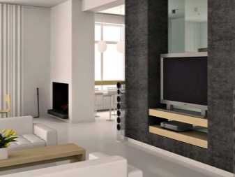 В комнатах, оформленных в стиле лофт, обычно не клеят обои. Большинство покрытий имеют объемную рельефную фактуру, подходит штукатурка, бетон, а также краска. Лофт характеризуется особой группировкой мебели, а также простотой планировки. Стиль требует наличия большой площади и простора. Именно так чаще всего оформляют зону гостиной в квартире-студии.