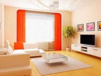 Если стены окрасить в светлые тона, визуально они будут увеличивать площадь комнаты. В случае, когда возникает желание оформить гостиную в ярких тонах, их “дозировку” нужно выполнять с особой осторожностью, чтобы не преувеличить.