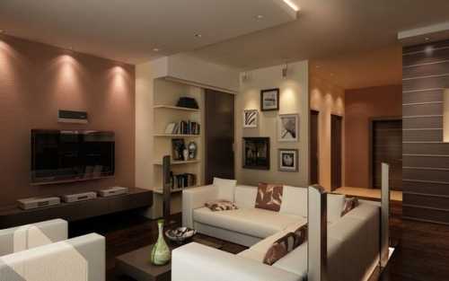 Универсальный вариант оформления зала – сочетание нейтральных оттенков.