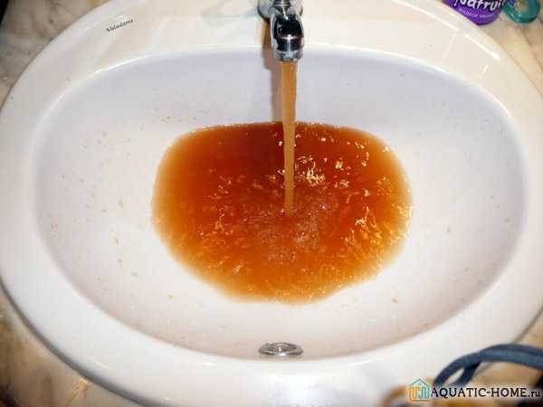 - Двухвалентного, которое, окисляясь, преобразуется в гидроксид металла, придающий жидкости буроватый оттенок.