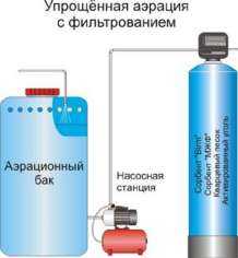 Использование этого метода обеспечивает превосходные результаты очистки. Процесс фильтрации достаточно прост – обогащенная кислородом среда, вступает в реакцию с железом, в результате последний разлагается и выпадает в осадок. На выходе после очистки твердые частицы осадка задерживаются фильтрами механической очистки.