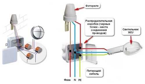 Еще до монтажа фотореле, нужно выбрать наиболее оптимальный вариант подключения проводов к клеммам датчика и осветительному прибору. Как правило используются две основные схемы подключения.