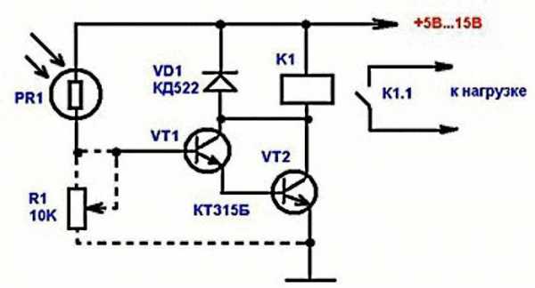 Простая схема фотореле проводит замеры освещенности при помощи одного из элементов: