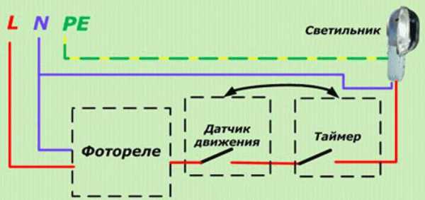 За счет применения микропроцессоров схема подключения фотореле с другими элементами приобрела новые функции. В алгоритм действий внесли таймер и датчик движения.