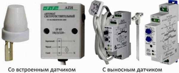 Для систем уличного освещения чаще всего используются фотореле следующих типов: С фотоэлементом внутри корпуса. Такие фотореле очень удобны для полной автоматизации уличного освещения. имеют полностью герметичный корпус с прозрачной частью напротив фотоэлемента; С внутренним фотоэлементом и таймером. Присутствие таймера позволяет автоматически отключать освещение не только с наступлением рассвета, но и по прошествии заданного временного интервала. В зависимости от модели таймера существуют фотореле с возможностью программирования на сутки, неделю и так вплоть до года. Это весьма удобно, т.к. можно отдельно задавать алгоритм работы уличного освещения для будних и выходных дней, а также имитировать присутствие жильцов в случае их отъезда; С выносным фотоэлементом. Отличаются надежностью, поскольку вся электроника и исполнительный механизм может монтироваться в помещении, а нечувствительный к воздействию температур фотоэлемент выносится удобном месте на улицу. Выбор между данными разновидностями должен производиться с учетом имеющихся требований, возможностей коммутации и бюджета.