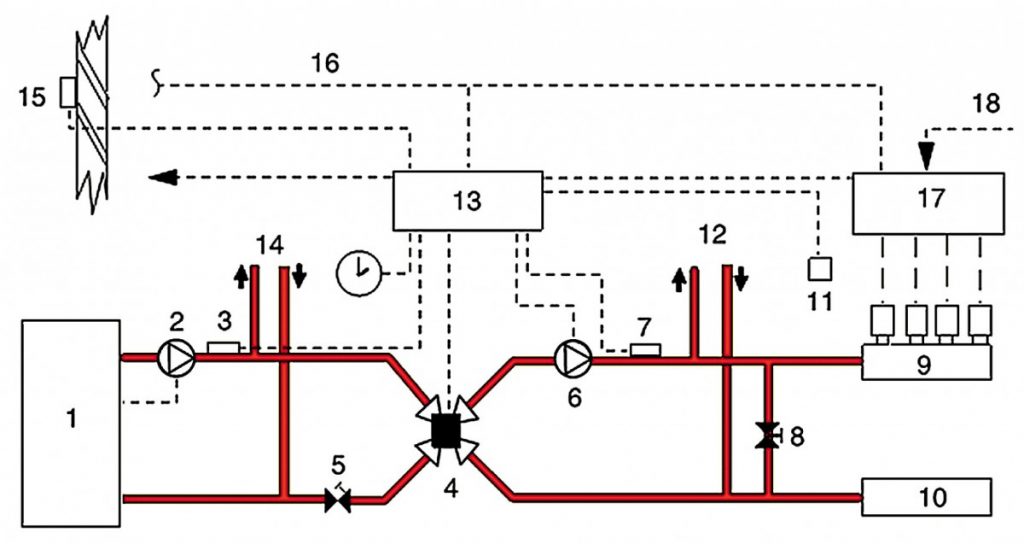 Схема смесительного узла для теплого пола